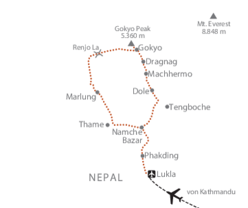Abseits der großen Tourismusströme zählt das Gokyotal mit seinen Hochalmen und tiefblauen Seen zu den schönsten Regionen des Solo-Khumbu- Gebietes. Wir besteigen den Gokyo Peak (5.357 m), genießen fantastische Blicke auf den mächtigen Mt. Everest und gelangen über den Renjo-La-Pass (5.360 m) in ein ruhiges Seitental. Hier wandern wir durch die fantastische Berglandschaft in einer seltenen Stille, bevor es über Namche Bazar wieder zurück nach Lukla geht.