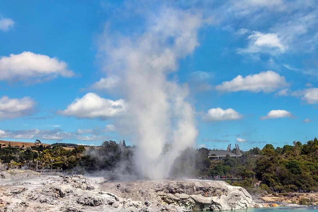 <Verabschiede dich von Rotorua und fahre weiter nach Taupō - eine beliebte und malerische Stadt am Ufer des Lake Taupō, dem größten See Neuseelands. Auf dem Weg dorthin besuchst du das Waiotapu Thermal Wonderland, wo du durch die Jahrtausende alte Geschichte der Geothermie und der Vulkane wanderst, einschließlich Neuseelands größtem Schlammpool und sprudelnden Becken, die in leuchtenden Farben leuchten. Der Rest des Tages steht dir zur Verfügung, um alles zu entdecken, was dieser malerische Teil des Landes zu bieten hat. Eine der besten Möglichkeiten, den See zu genießen, ist, ihn zu befahren - sprich mit deinem Reiseleiter, um mehr über die nachhaltigen Segel- und Kreuzfahrtmöglichkeiten zu erfahren, die heute Nachmittag zur Verfügung stehen. -