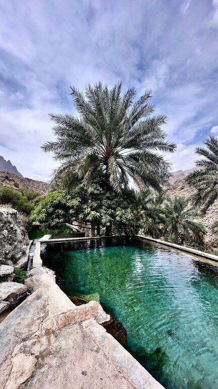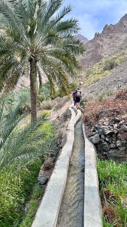 <Nach dem Frühstück fahren wir in das Dorf Al Alya, das tief im Wadi Bani Kharus liegt. Wir wandern in Richtung Ad Dar, durch die üppigen Gärten der Oase und schließlich wieder zurück zum Ausgangspunkt. Schließlich erreichen wir Bimah, wo wir die Nacht im Gebirge des Jabel Shams verbringen werden.