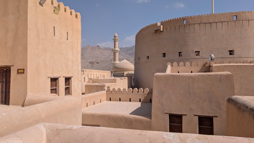 <Am Morgen fahren wir nach Al Khitaym und wandern zu einem verlassenen Dorf mit alten Höhlenwohnungen, das sich eindrucksvoll an einen Felsen auf 1.800 m schmiegt. Unterwegs eröffnen sich spektakuläre Ausblicke in den „Grand Canyon“ des Oman, das Wadi Nakhr, und auf den höchsten Gipfel des Landes, den Jabel Shams mit 3.000 m. Diese Weite und Tiefe bleibt unvergesslich. Am Nachmittag fahren wir weiter nach Nizwa, die alte Hauptstadt des Oman.