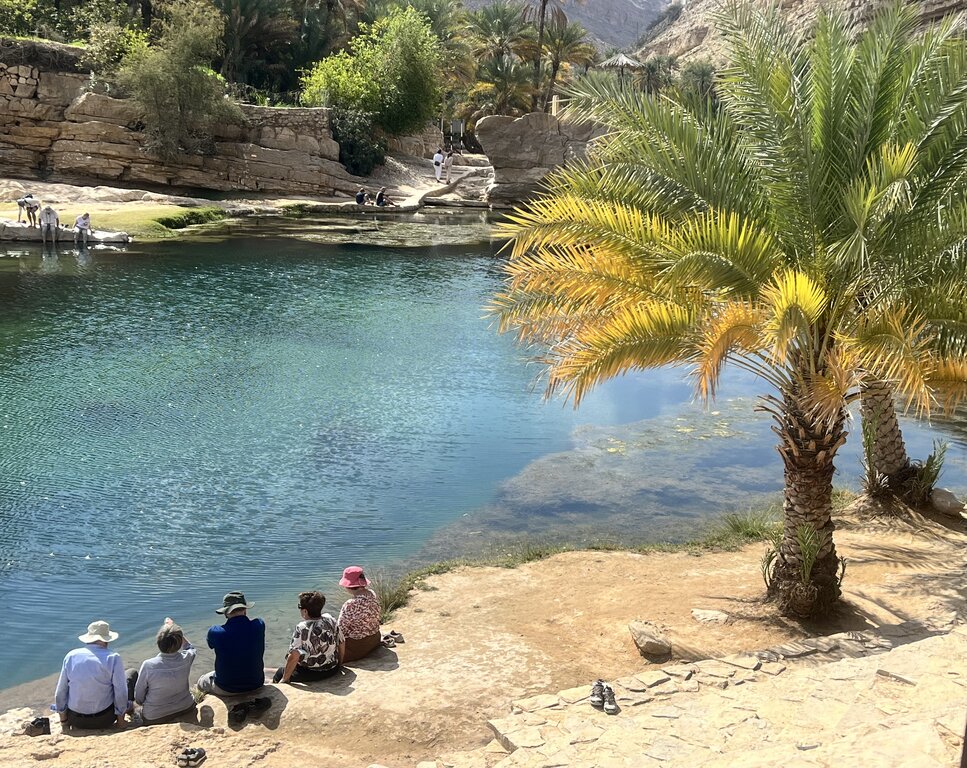 <Am Morgen erreichen wir das Wadi Bani Khaleed, eines der schönsten und noch bewohnten Oasentäler Omans. Nach einem kurzen Spaziergang eröffnen sich uns glasklare Naturpools, in denen wir ein erfrischendes Bad nehmen können. Danach erkunden wir die kunstvolle Bebauung und das traditionelle Bewässerungssystem der Gärten am Wüstenrand. Unter Palmen und Mangobäumen genießen wir ein Picknick im Beduinenstil. Am Nachmittag führt uns die Fahrt weiter ins imposante Hajar-Gebirge bis nach Nizwa.