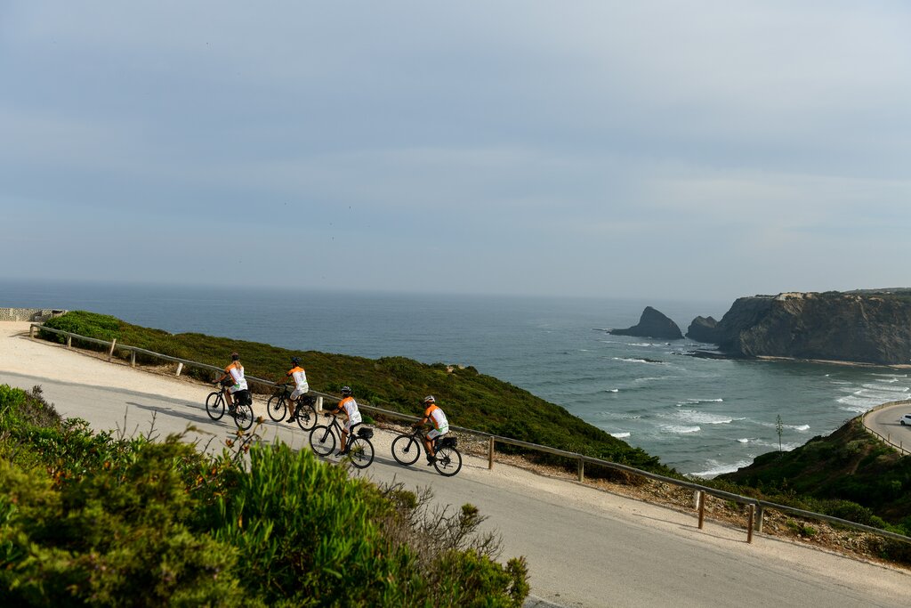 <Beginnen Sie mit der Eroberung der Burg von Aljezur und genießen Sie die schöne Aussicht auf das Dorf und seine gepflegten Gemüsegärten. Dann radeln Sie wieder an die Küste und besuchen eine Festung mit atemberaubendem Blick auf die Steilküste. Die perfekte Kulisse für die Verteidigung! Von hier aus können wir den „Nadelfelsen“ sehen, einen imposanten Felsen, der mitten im Meer steht. Wir fahren wieder ins Landesinnere und beginnen unser Abenteuer. Zuerst zwischen Eukalyptusbäumen, später zwischen wilden endemischen Sträuchern und schließlich entlang eines wunderschönen kleinen Sees und durch ein Tal. Völlig wild, überraschend und atemberaubend. Sie radeln nach Bordeira, einem hübschen Weiler mit einer Kirche im manuelinischen Stil, und fahren dann durch ein weiteres bezauberndes Tal bis Carrapateira. Hier werden Sie von der unglaublichen Aussicht und der rauen Küste überwältigt sein.