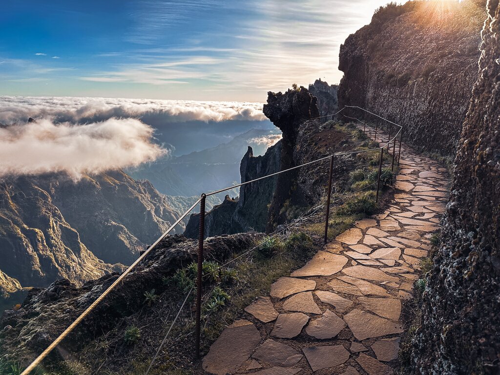 Hinweis: Der Wanderweg zwischen Pico do Arieiro und Pico Ruivo ist derzeit behördlich gesperrt. Laut aktuellen Informationen könnte der Weg bereits im April 2026 wieder geöffnet sein. Sollte er zum Zeitpunkt Ihrer Reise noch nicht zugänglich sein, erwartet Sie eine ebenso beeindruckende alternative Tour. Alle Details hierzu erhalten Sie mit Ihren Reiseunterlagen.