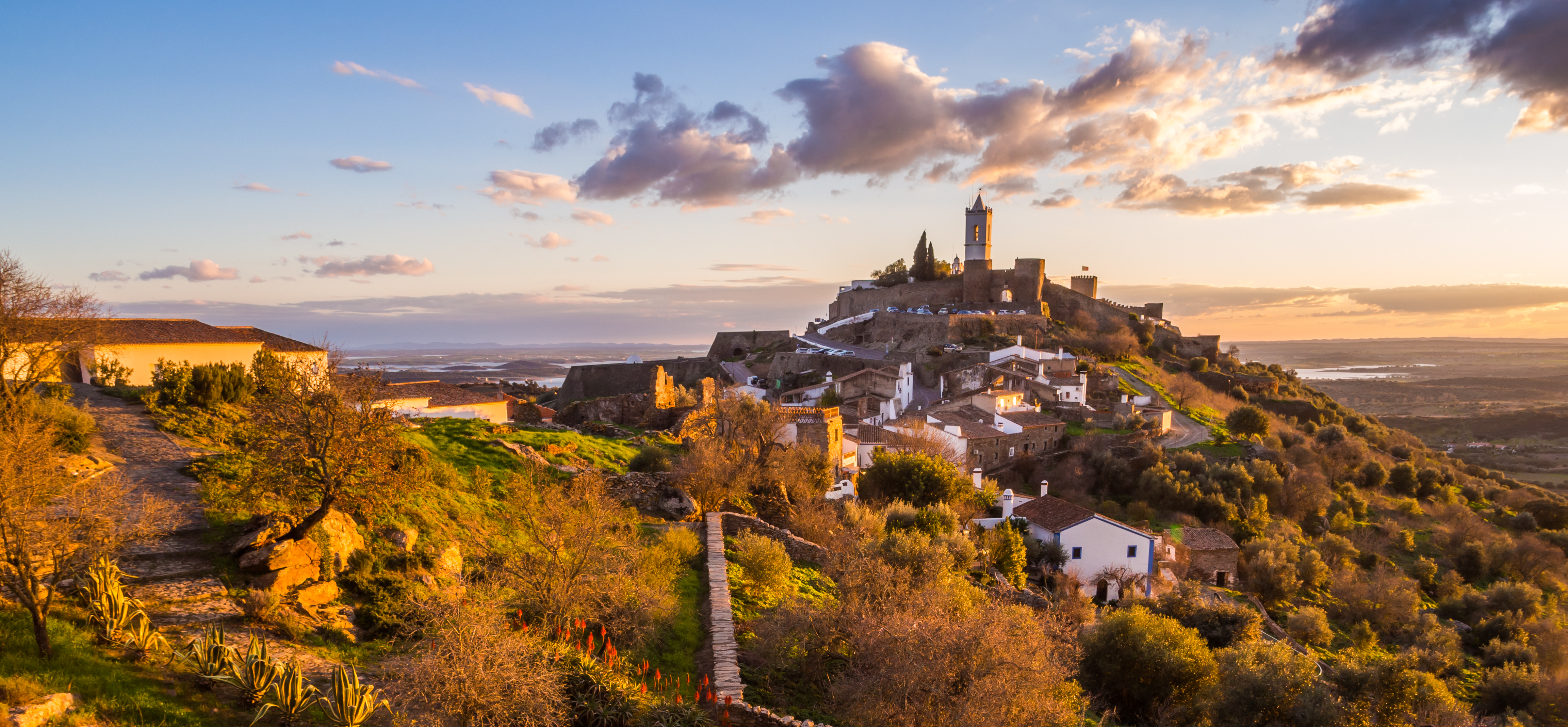 <Nach einem ruhigen Frühstück in Évora setzen wir unsere Reise über die stillen Straßen des tiefen Alentejo fort, wo sich die goldenen Ebenen endlos erstrecken und die Stille Teil der Landschaft wird. Das heutige Ziel ist eines der bezauberndsten Juwelen der Region: das mittelalterliche Dorf Monsaraz auf einem Hügel.