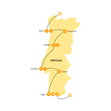 Bitte halte dich um 9 Uhr in der Lobby bereit. Du triffst deine Reiseleitung und startest die Erlebnis-Reise durch Portugal.