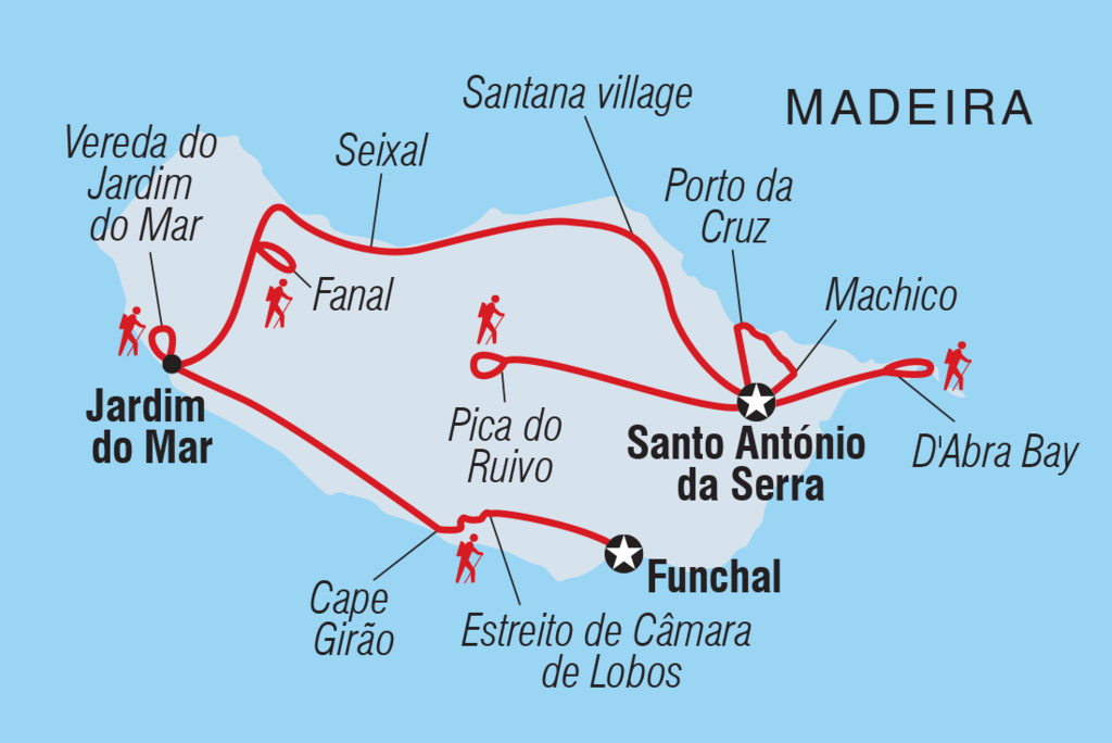 Begib dich auf ein siebentägiges Wanderabenteuer durch Madeiras dramatische Küsten, vulkanische Landschaften und üppige Wälder. Wandere auf bekannten Pfaden wie Vereda do Fanal, Pico do Ruivo, Levada do Norte und der malerischen Schleife von Jardim do Mar über Vereda do Jardim und Levada da Calheta. Unterwegs kannst du nahe gelegene Dörfer wie Santana (berühmt für seine traditionellen Reetdachhäuser) sowie Prazeres und Seixal besuchen. Nimm ein Bad in vulkanischen Felsenpools, trinke Madeiras typischen Ponch und besuche eine lokale Rum-Brennerei. Mit seinem ganzjährig milden Klima und der abwechslungsreichen Landschaft ist Madeira der perfekte Ort für einen aktiven Winterurlaub.