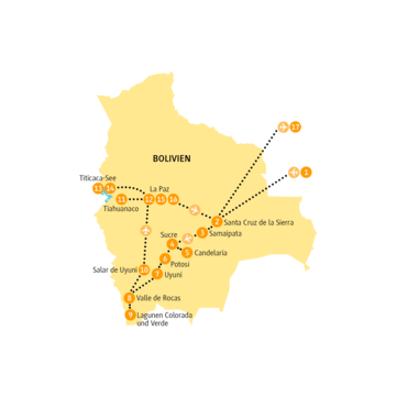 - Regionalflüge von Santa Cruz nach Sucre, von Uyuni nach La Paz und von La Paz nach Santa Cruz